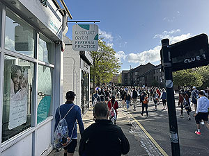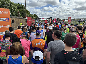 Arriving at the station led to a good long walk to the starting area. COVID status checks were made then as usual the queue for the toilets.At this stage you start to get an idea of what makes the London marathon different, with people dressed as telephone boxes,airplanes, trees and just about everything you can think off.