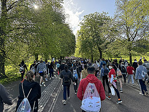 At the race end you get your medal then water and a foil blanket. The baggage lorries are not far away and service was very quick to retrieve the bag. The exit is crazy with people as families and friends try to meet up with runners. Make sure you agree on a meeting place before hand otherwise you will be one of the thousands trying to get a phone signal.